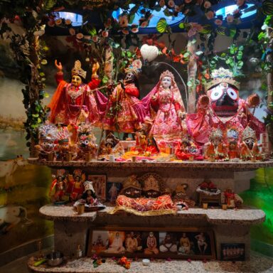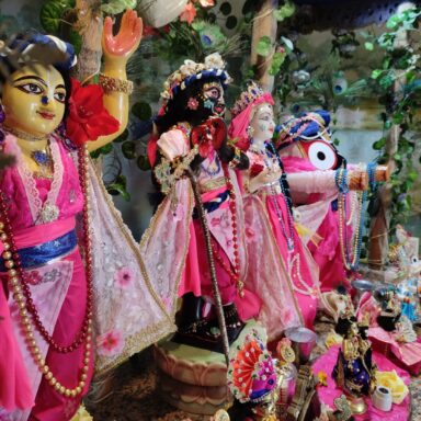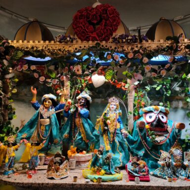 At Radha Gopinath Temple, we seek to inspire and guide sincere seekers on the path of pure devotional service (Shuddha-bhakti), centered on the loving worship of Sri Sri Radha and Krishna. Through daily worship, congregational chanting, scriptural study, and devotional service, we cultivate a deep connection with the Supreme Lord.